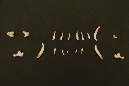 上の写真は、チワワで1頭から抜歯した乳歯です。残念ながらこのチワワは、ほとんどの歯が抜けずに2枚歯になっていました。まだ歯並びは問題なかったため、早急に手術の予約を取り、全身麻酔下で抜歯を行いました。